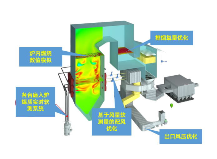 实现锅炉燃烧优化闭环控制,完成风煤比、二次配风、一次风压以及排烟氧量随锅炉负荷、煤质变化的实时自动调整。